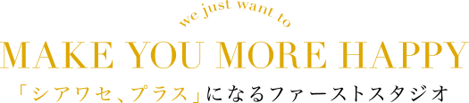 写真館&衣装レンタルのファーストスタジオのコンセプトは“シアワセ、プラス”。成人式前撮り、七五三・お宮参り写真、振袖レンタルや卒業袴レンタル、七五三の着物レンタル等、今のシアワセを最新の衣装とオシャレな写真でもっと素敵な記念に。婚活写真、就活、オーディション等、頑張るあなたをハイクオリティな写真で応援します。幸せな記念日を、そして幸せのための第一歩をファーストスタジオで始めませんか?